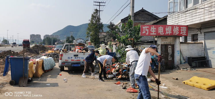 8月14日,公司加入到災(zāi)區(qū)救援的行列中,由黨員干部、職工組成的志愿服務(wù)隊(duì),來(lái)到河瀝溪下水隊(duì)、商貿(mào)街等地,清理垃圾、污泥。