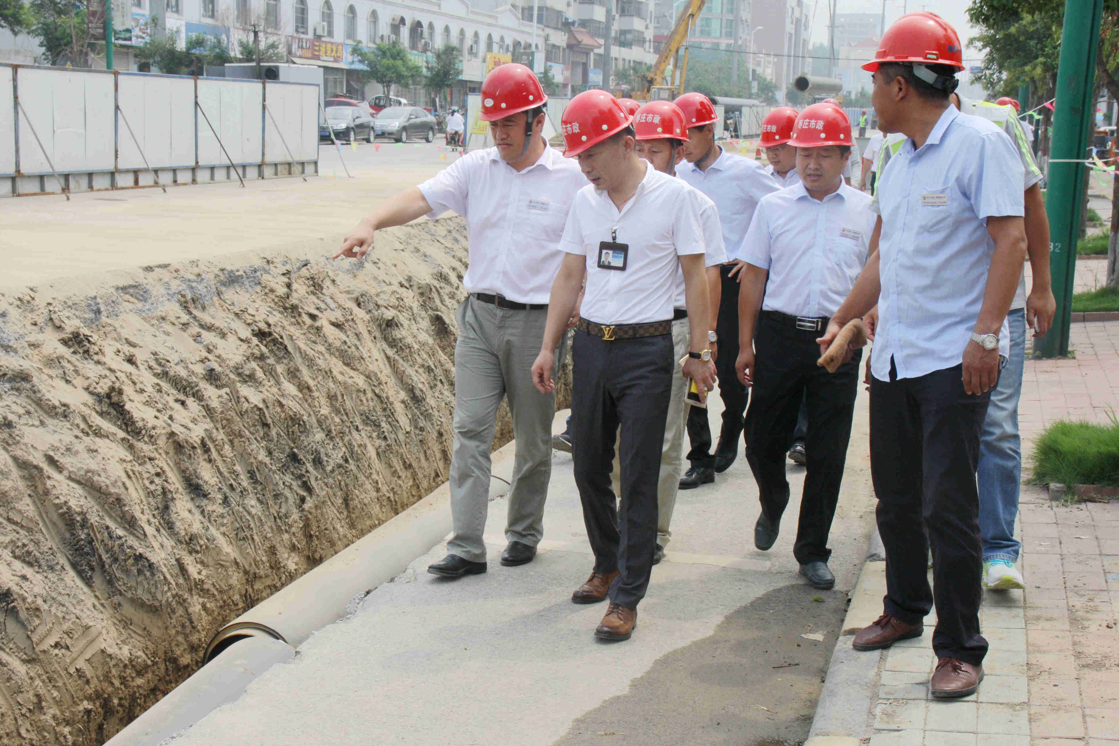 8月1日上午,公司董事長、總經理趙峰帶領公司全體高管及行政部、企管部、材料設備分公司人員到高新區西區供熱改造工程現場,檢查工程實施情況。路橋一分公司經理黃道峰及供熱改造工程項目部人員等陪同檢查。