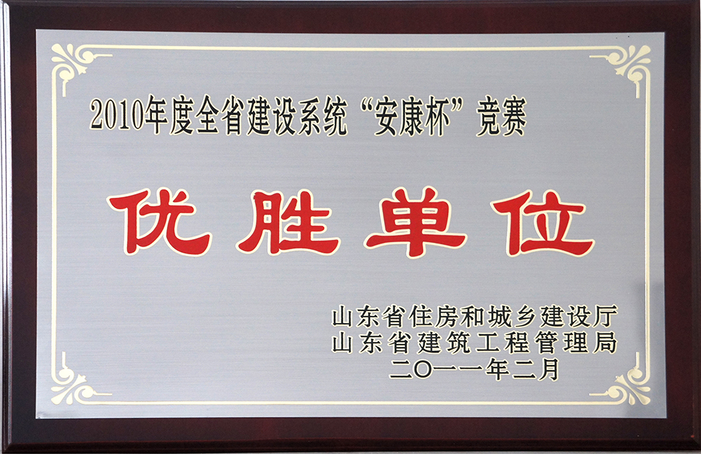 被山東省住房和城鄉建設廳、山東省建筑工程管理處聯合評為2010年度全省建設系統“安康杯”競賽優勝單位。