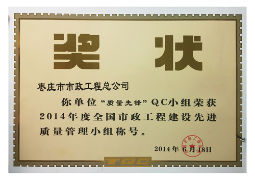 “質量先鋒”QC小組榮獲2014年度全國市政工程建設先進質量管理小組稱號