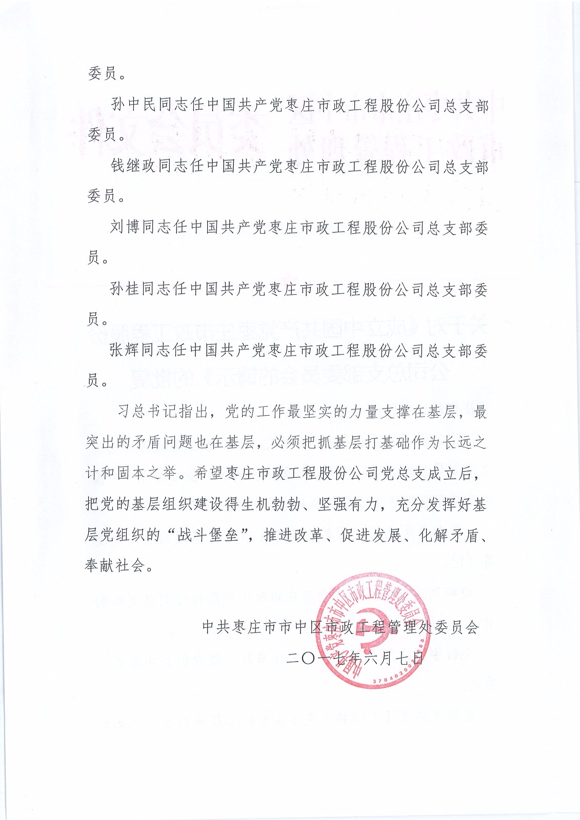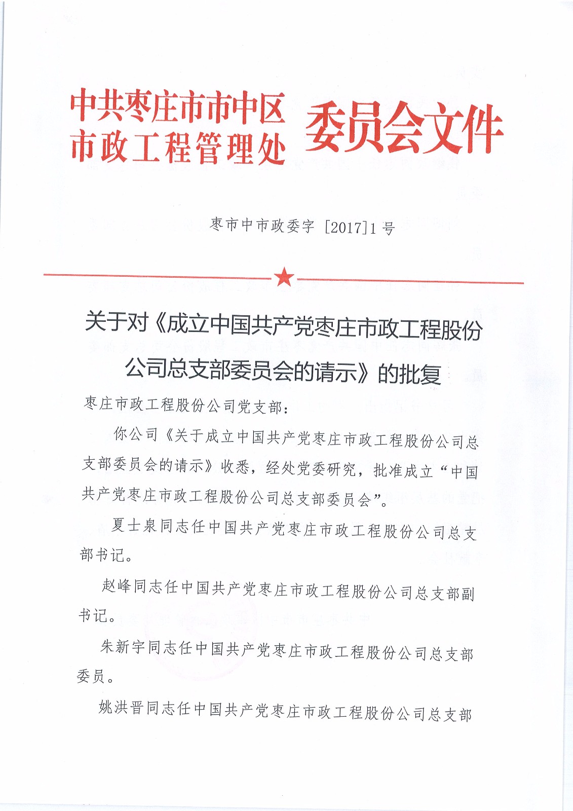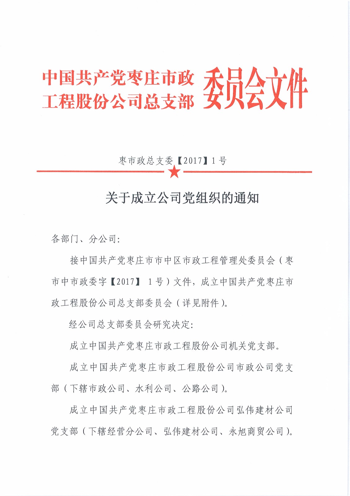 關于成立公司黨組織的通知