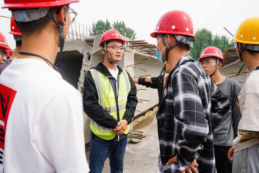 學院師生一行先到工程分公司遺棠預制梁場參觀,梁場施工負責人李闖闖為師生們詳細地介紹了集團公司的發展狀況及箱梁、空心板的制作流程與質量控制,并耐心回答同學們提出的各種問題。隨后師生一行到達世紀大道欣興路立交及水穩攤鋪施工現場,世紀大道(店韓路—欣興路段)項目總工馬寧向來訪師生介紹了世紀大道的項目概況、施工流程和工藝特點,并帶領師生們在項目工地進行實地參觀。從書本聯系實際,從平面走向立體,生動形象的進行講解。參觀學生均表示受益匪淺,對施工現場有了更深層次的認識。