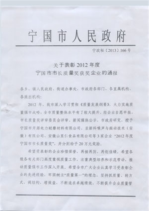 寧國市市長質(zhì)量獎是市政府設(shè)立的最高質(zhì)量榮譽,主要授予本市具有法人資格、實施卓越的質(zhì)量管理經(jīng)營模式、有廣泛的社會知名度與影響力、在行業(yè)內(nèi)處于領(lǐng)先地位、取得顯著經(jīng)濟效益或社會效益的企業(yè)。2008年以來,公司通過導(dǎo)入、推進卓越績效管理模式,積極創(chuàng)新質(zhì)量管理理念和方法,在公司內(nèi)部營造了深厚的學(xué)習(xí)和應(yīng)用氛圍。在接到市質(zhì)監(jiān)局關(guān)于 2012年度 “市長質(zhì)量獎”的參評通知后,公司即刻系統(tǒng)地梳理了2009年至2012年經(jīng)營管理工作,從領(lǐng)導(dǎo)、戰(zhàn)略、顧客與市場、資源、過程管理、測量、分析和改進、經(jīng)營結(jié)果等七個方面進行了自我評價。評審分為文件審核和現(xiàn)場審核兩部分,公司以文審第一名的成績進入現(xiàn)場評審階段并于2012年7月25日通過了專家的現(xiàn)場評審。經(jīng)公示后,公司最后榮獲2012年市長質(zhì)量獎。