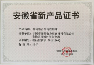 寧國(guó)市開源電力耐磨材料有限公司研發(fā)的鋼球產(chǎn)品“特高鉻合金鑄鐵磨球”榮獲安徽省新產(chǎn)品鑒定證書。
